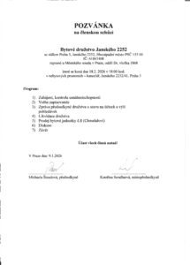 Pozvánka na členskou schůzi BD dne 18.2.2026 v 18h
